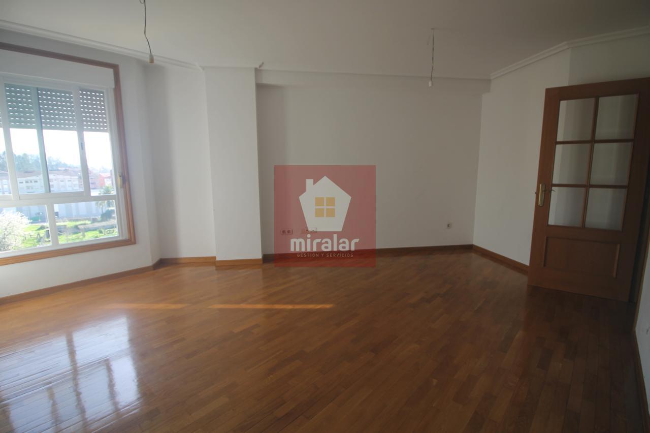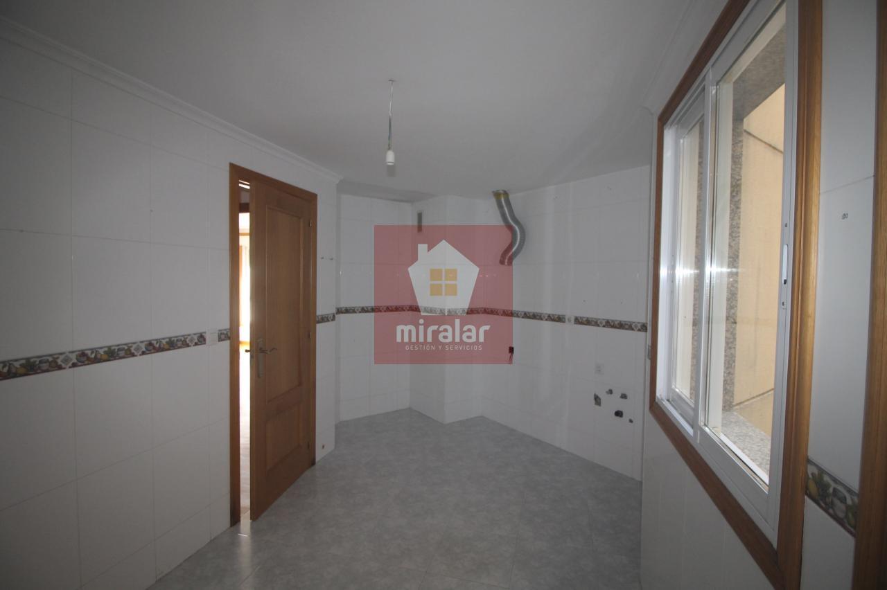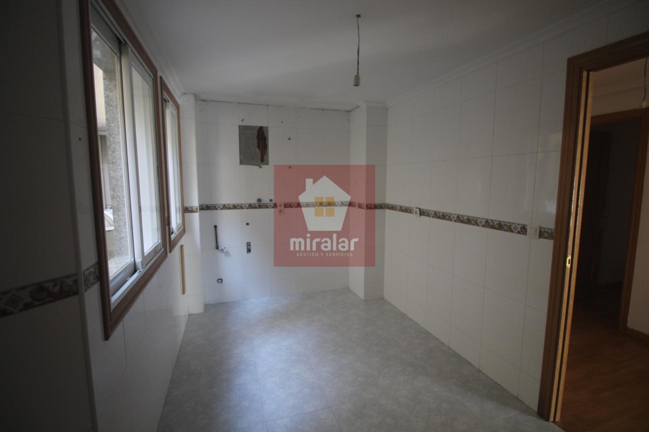 Se vende Piso en Ponteareas, con una superficie de 90 m2 construidos aprox., 3º planta exterior, en zona Parque Ferro Ucha, la vivienda consta de coina sin amueblar, tres habitaciones y dos baños. Agua caliente y calefacción eléctricos (que hay que instalar). Cuenta con plaza de Garaje y Bodega en sótano -1 del edificio.